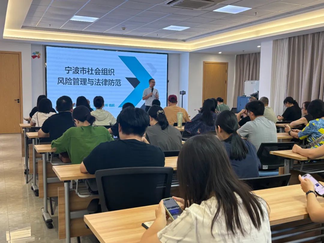 為助力各類社會組織把握當前法律體系框架,有效提升風險管理能力,保障社會組織健康有序發展,8月15日,法律體系與風險管理培訓在寧波 (鄞州) 社會組織創新園二樓大會議室順利舉辦。此次培訓吸引了眾多社會組織代表參與,現場學習氛圍濃厚。