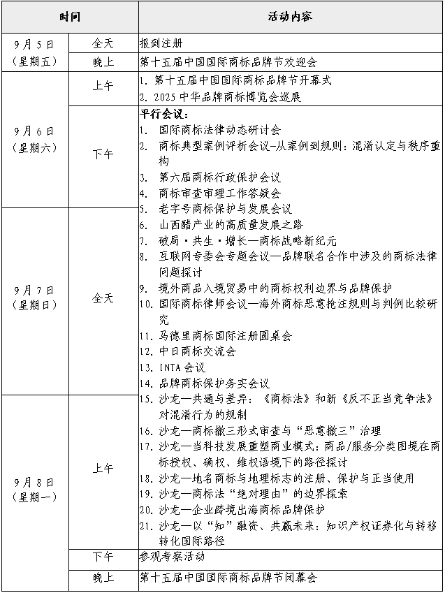 第十五屆中國國際商標品牌節簡明日程草案